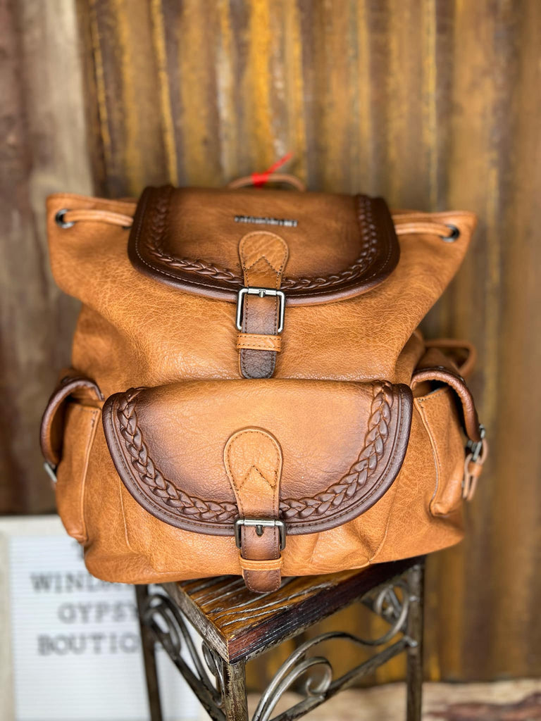 Style: Rustic Western, Utility Backpack, Braided Leather Look