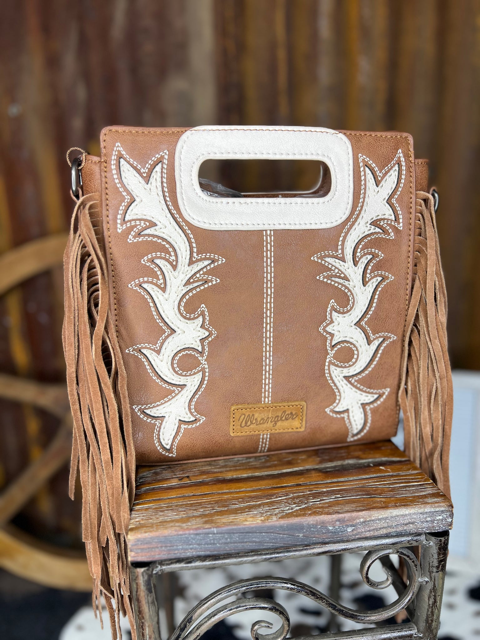 The Prairie Fringe Clutch – Brown features the same western design you love in a rich brown faux leather. Detailed with contrasting cream boot stitch accents, a cutout handle, and long fringe on each side, this clutch brings classic western style with everyday versatility. Finished with a removable strap, it’s perfect for concerts, date nights, rodeos, or adding a western touch to any outfit.