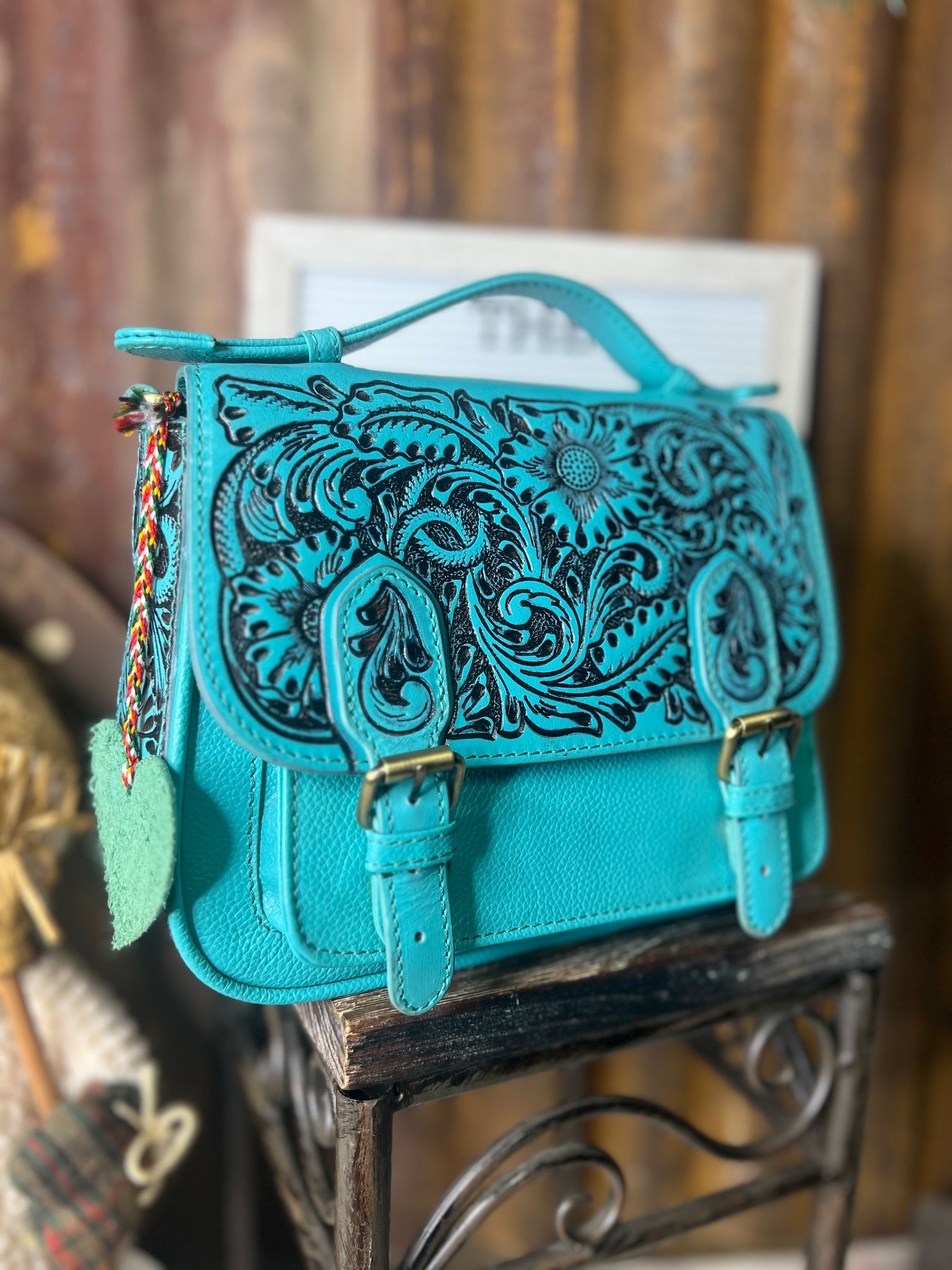 This spectacular bag will make a statement with its luxurious teal leather featuring an intricate woven geometric pattern. The mesmerizing 3D cubic design adds sophisticated texture to this spacious carryall. Carrying handles are in matching leather. A sleek exterior zip pocket keeps essentials within easy reach. Zipper-close top. Perfect for the style-conscious fashionista!