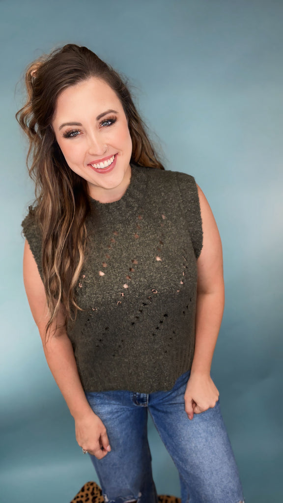 A little retro, a little cozy — The Oaklyn Sweater Vest is giving major fall energy. Designed with a fuzzy textured knit, subtle eyelet detail, and a slightly cropped fit, it’s the perfect top to layer over your fave button-up or wear solo for a trend-forward vibe.