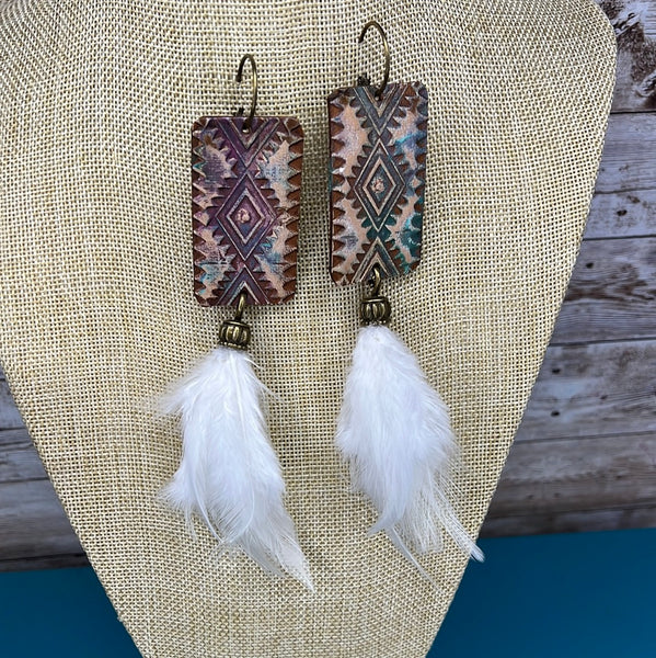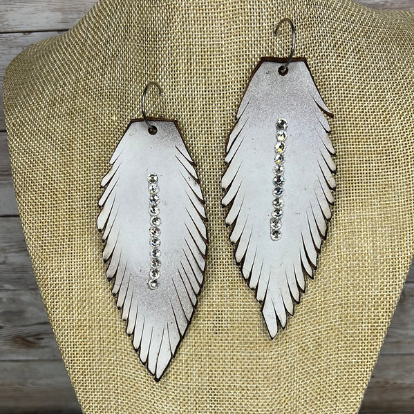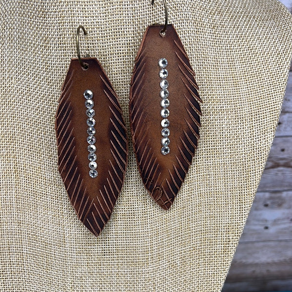 Handmade Tooled Leather Earrings With Rhinestone Details $36.00