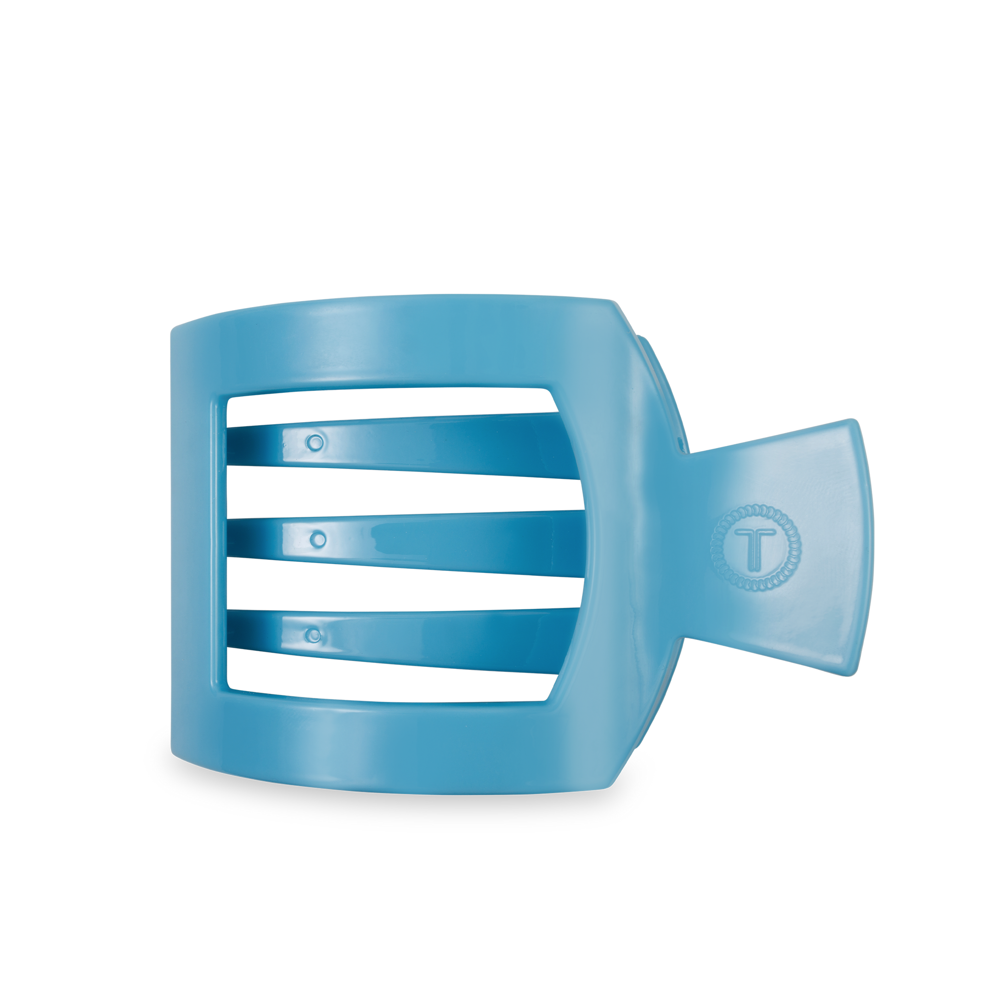 Lay flat and relax with the new TELETIES Summer Sky Large Flat Square Hair Clip in Blue. This hair clip is designed to allow you to lay back flat, do yoga, or sit comfortably in a seat with a headrest, and it is made with the same material that is nearly unbreakable. Lay down flat with comfort Bendable teeth for a secure yet gentle hold Lightweight, durable, and hair-friendly Perfect for all-day wear—from sunup to sundown The large size is great for thick hair. The large size is 4.1 inches long.