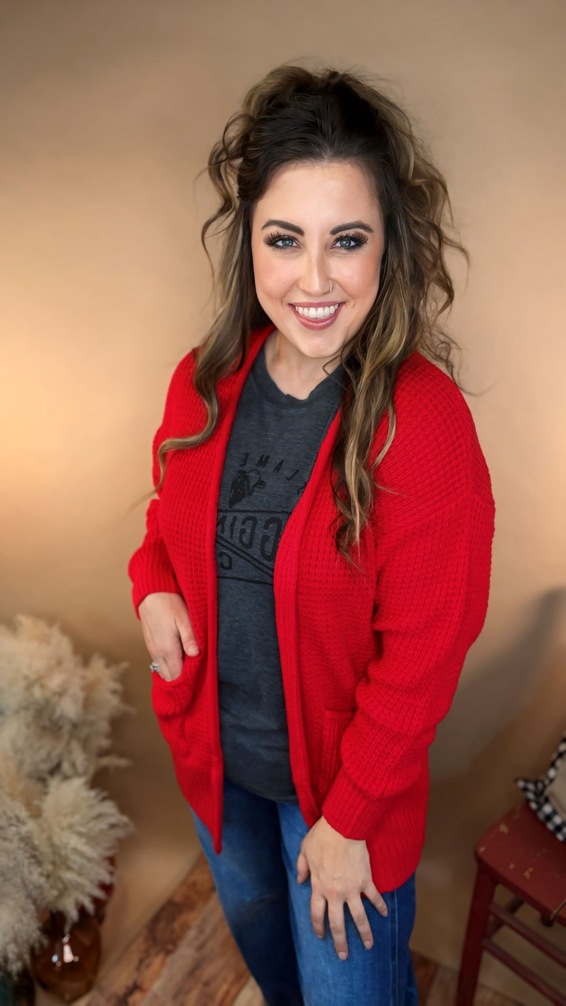 Cozy meets classic in The Willow Waffle Cardigan, your new go-to layer for crisp mornings and chilly evenings. This open-front cardigan features a low gauge waffle knit for that chunky, lived-in feel—without the bulk. Designed with a relaxed fit and roomy front pockets, it’s equal parts comfortable and cute.